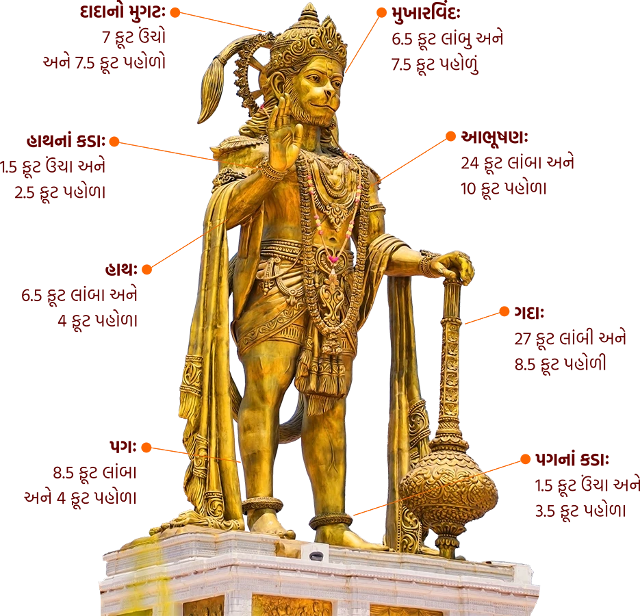 ગુજરાતમાં પંચધાતુમાં નિર્મિત શ્રી હનુમાનજી મહારાજની સૌથી ઉંચી પ્રતિમા ‘કિંગ ઓફ સાળંગપુર’ ભક્તિ, સેવા અને કળાનાં દિવ્યતા અને ભવ્યતાનાં સંગમ સમાન છે. માત્ર સ્વામિનારાયણ સંપ્રદાય જ નહીં પરંતુ ગુજરાત અને સનાતન ધર્મનાં ગૌરવ સમાન આ પ્રતિમા સાળંગપુરધામમાં સૌને દર્શન આપે છે.